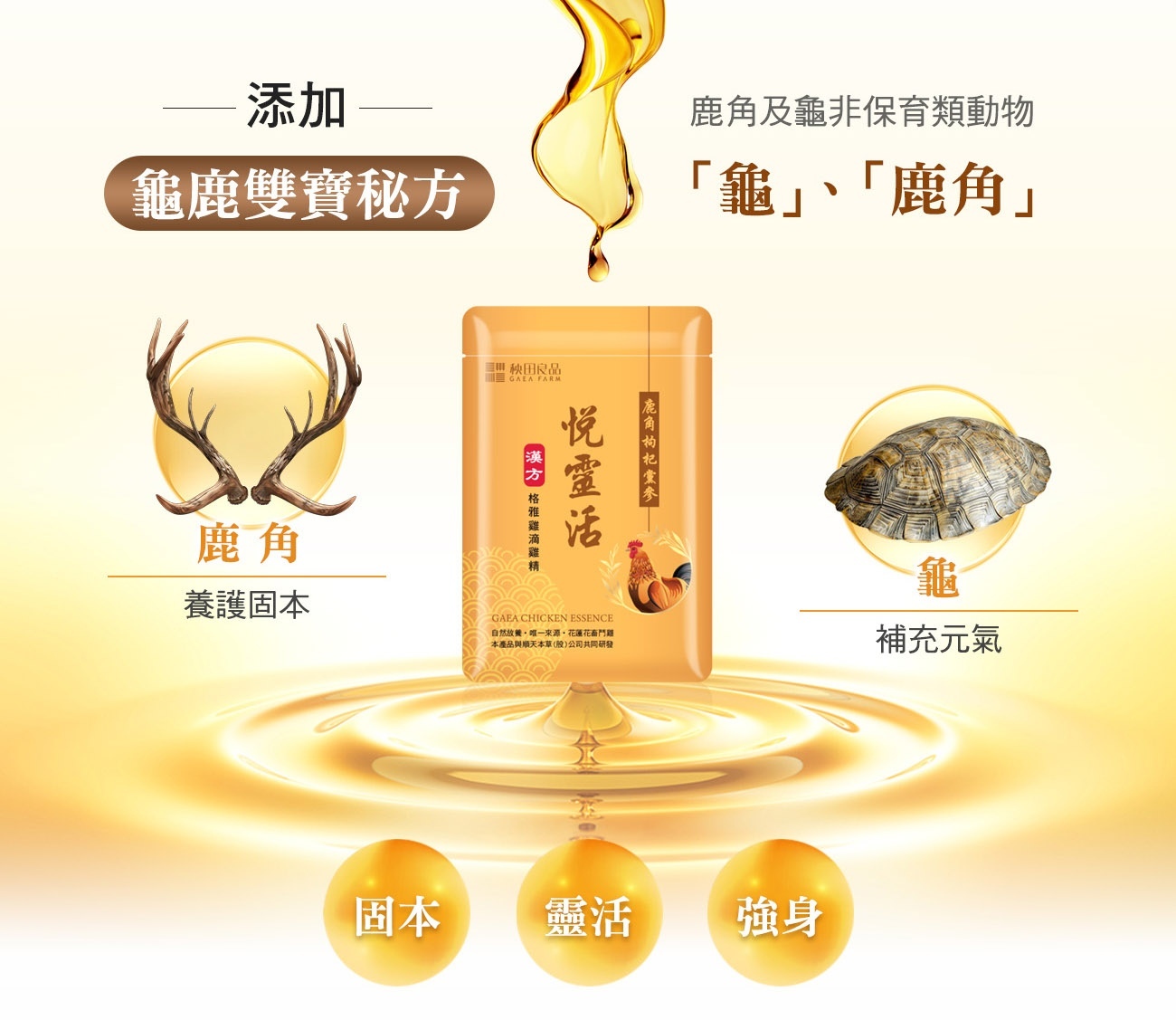 添加了鹿角、龜、枸杞子、黨蔘及決明子,